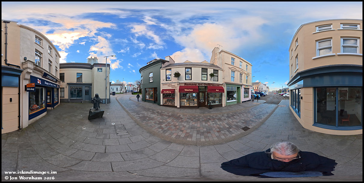 A panorama shot outside the RNLI shop on Market Hill, which is a bit of a misnomer, as it's not really a hill and it's been many years since a market was held here!
